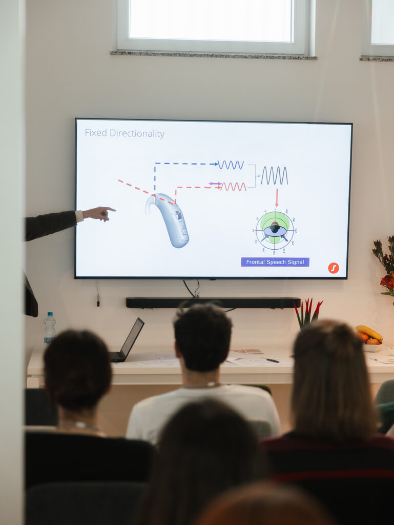 Nakon teorijskog dela, studenti su učestvovali u tri praktične demonstracije, osmišljene kao simulacija realnog rada u audiološkoj praksi. Prva demonstracija, Sound Demo, odnosila se na simulaciju nošenja slušnih aparata i razumevanje zvučnih iskustava korisnika. Druga demonstracija, Hearing Test Demo, obuhvatila je proces pregleda sluha, dok je treća, Fitting Demo, bila posvećena podešavanju slušnih aparata i objašnjenju načina na koji se oni individualno prilagođavaju potrebama svakog pacijenta.